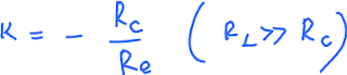 Хэрэв ачааллын эсэргүүцэл нь MOhm-ийн хэмжээстэй байвал коллекторын эсэргүүцэл нь kOhm-ийн хэмжээстэй тул өсгөлтийн коэффецент нь дараах тэгшитгэлээр тодорхойлогдоно.